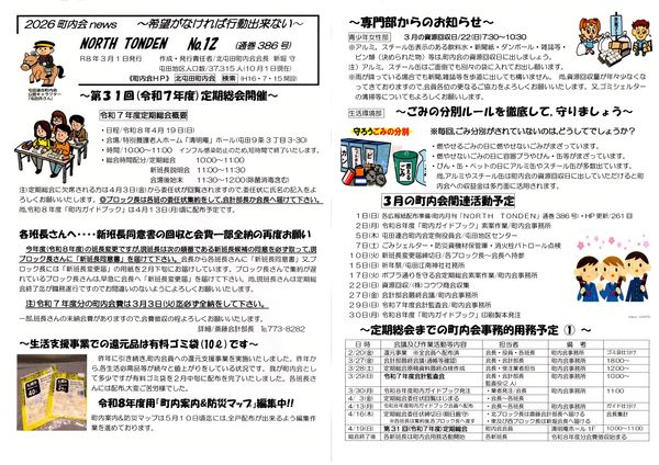 | □町内会会報 NORTH TONDEN No.12(通算386号) |